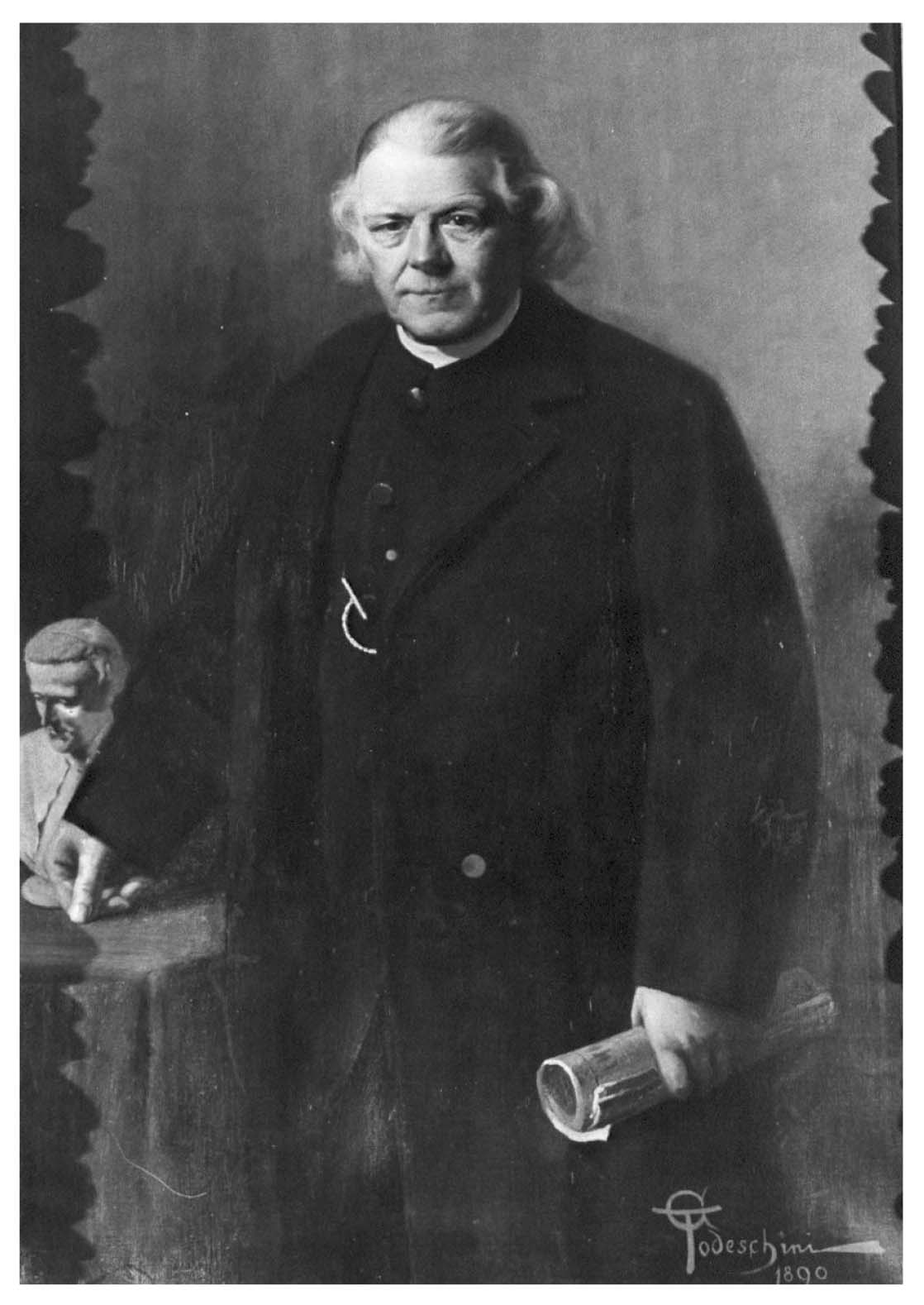 - Portrait of Antonio Stoppani painted by the nephew Giovanni Battista Todeschini one year before his death. Stoppani wears a black cassock with a watch chain on his chest; he holds a newspaper in his left hand and leans his right hand on a table on which is a sculpture of Antonio Rosmini (Musei Civici di Lecco, https://www.lombardiabeniculturali.it/opere-arte/schede/G1050-00204/).