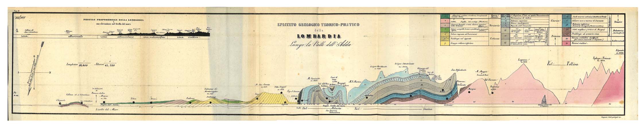 - Theoretical and practical geological section of Lombardy along the Adda Valley (from Stoppani, 1857). Courtesy ISPRA Library.