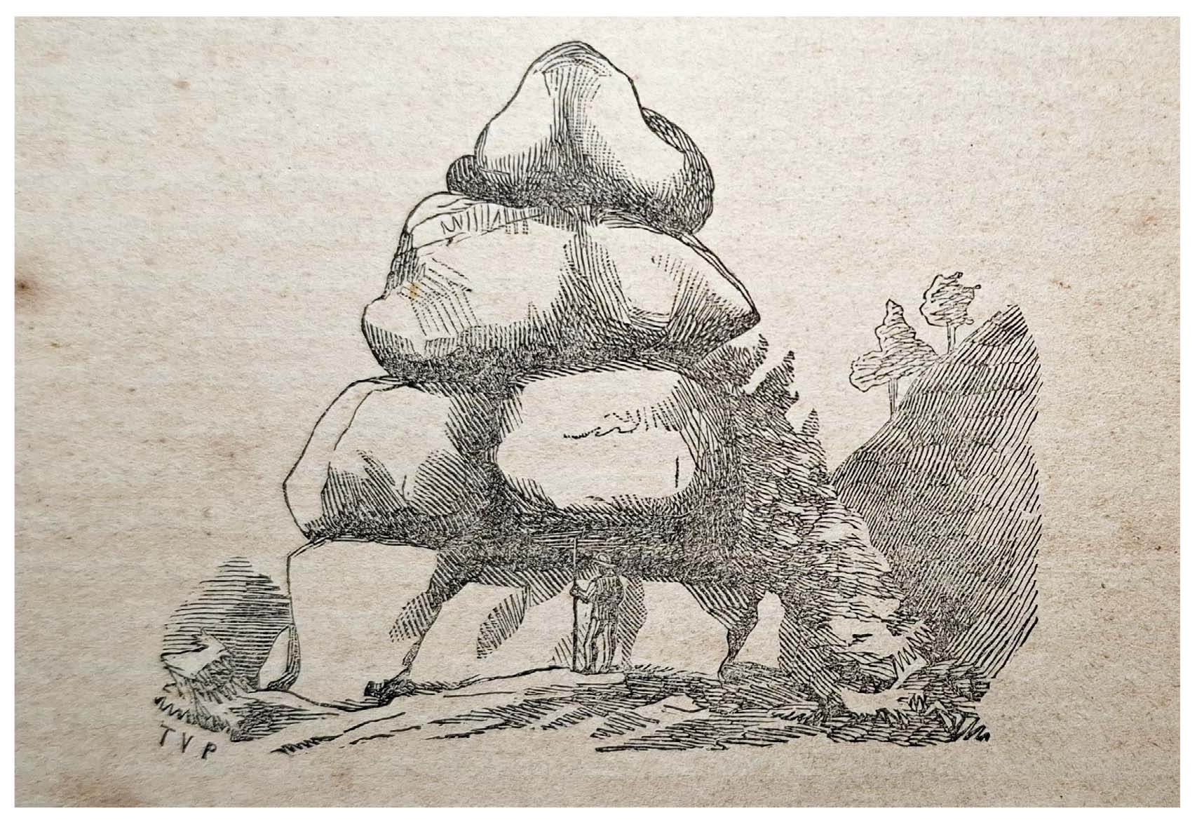 - Trachytic spheroids with prismatic base, on the Cimini Mountains above Viterbo (Lazio) (Stoppani, 1870). Courtesy ISPRA Library.