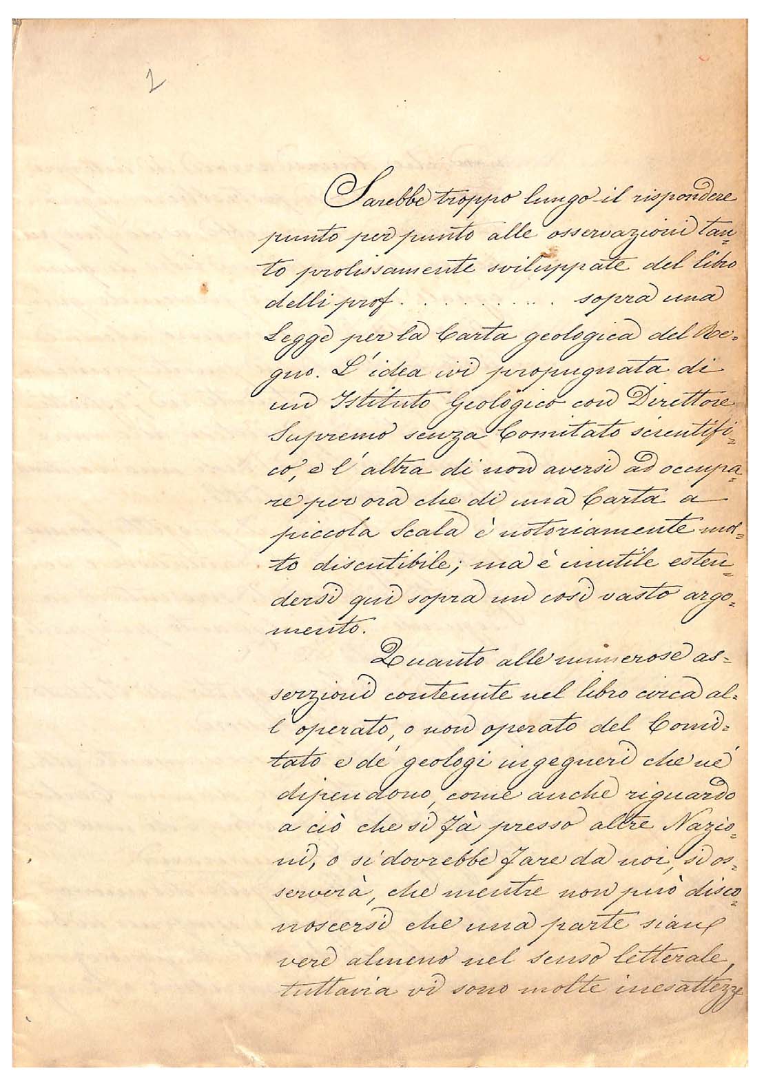 - The first page of the original manuscript of the counterproposal for the Geological Map of Italy suggested by Stoppani and Taramelli. Courtesy ISPRA Library-Archive.