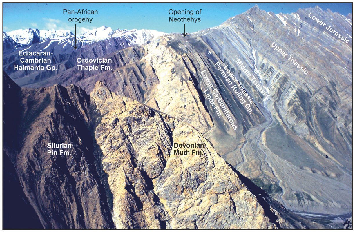 - Paleozoic-Triassic succession of the Pin Valley (Spiti). Continuously exposed upper Neoproterozoic to Jurassic strata document ~400 Ma of geological history, including major events such as the Ordovician Pan-African Orogeny and Carboniferous rifting followed by Permian opening of Neotethys.