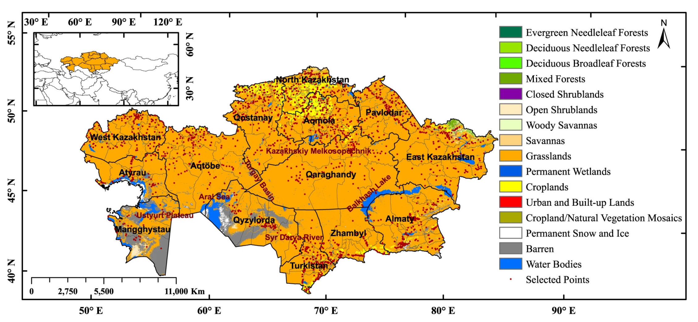 - Land cover map of Kazakhstan. Source: compiled by the authors.