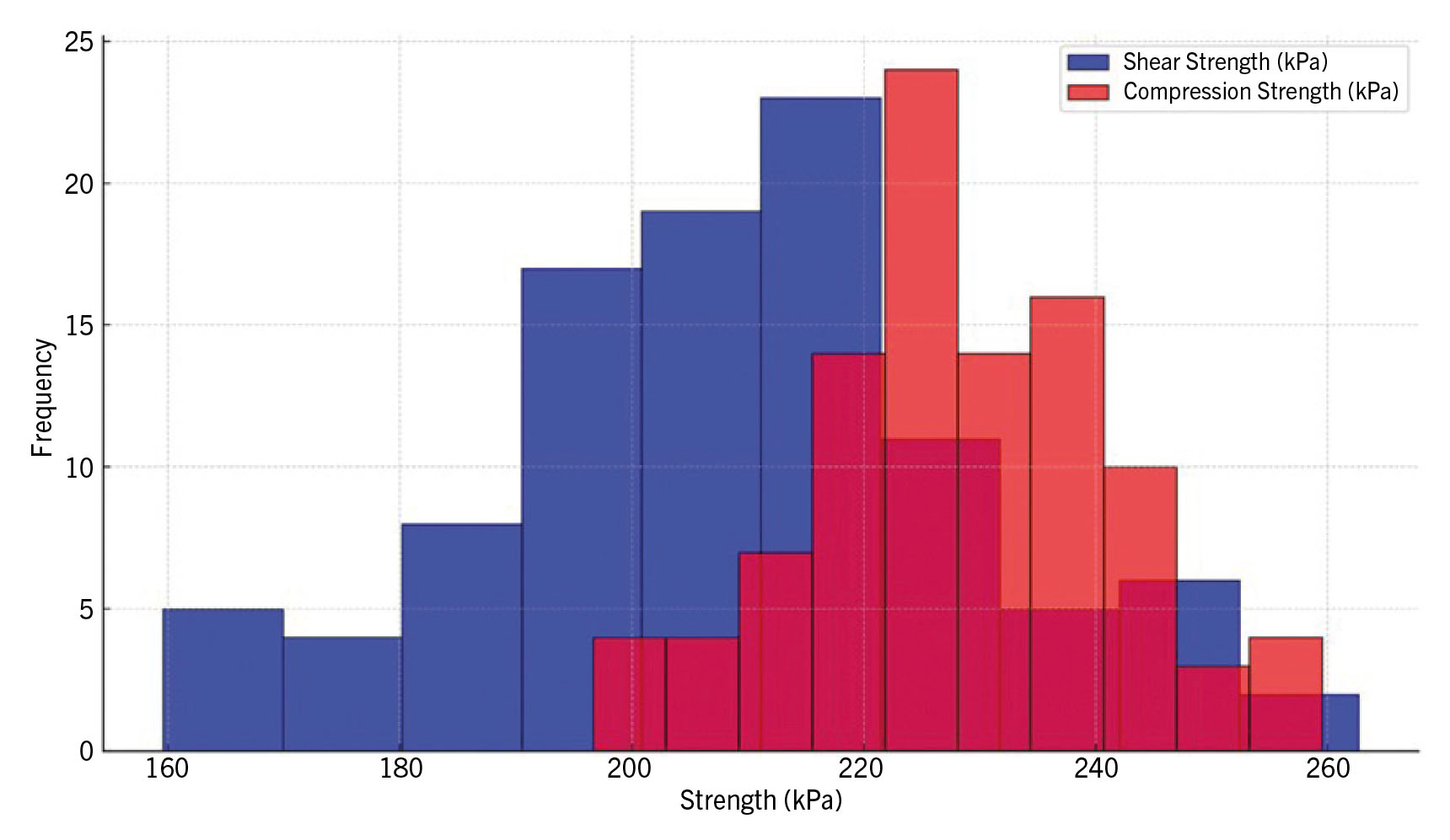 - Distribution of shear and compression strength in soil samples