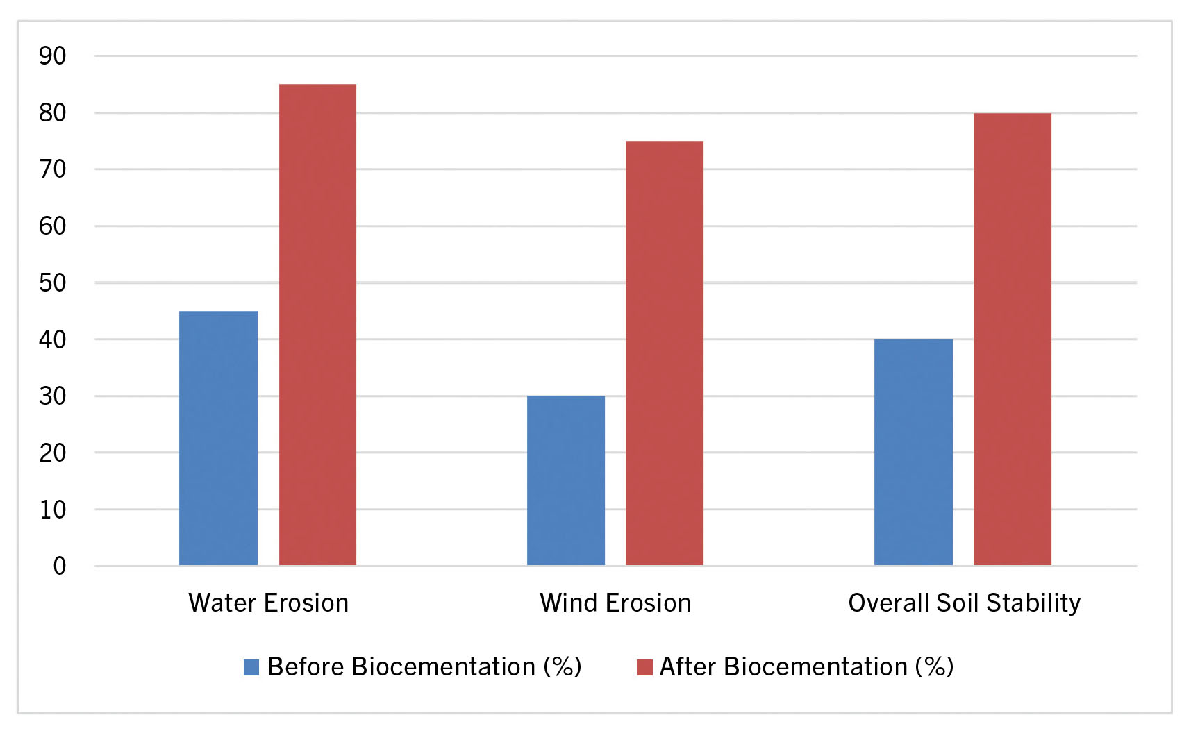 - Soil resistance to different types of erosion before and after biocementation